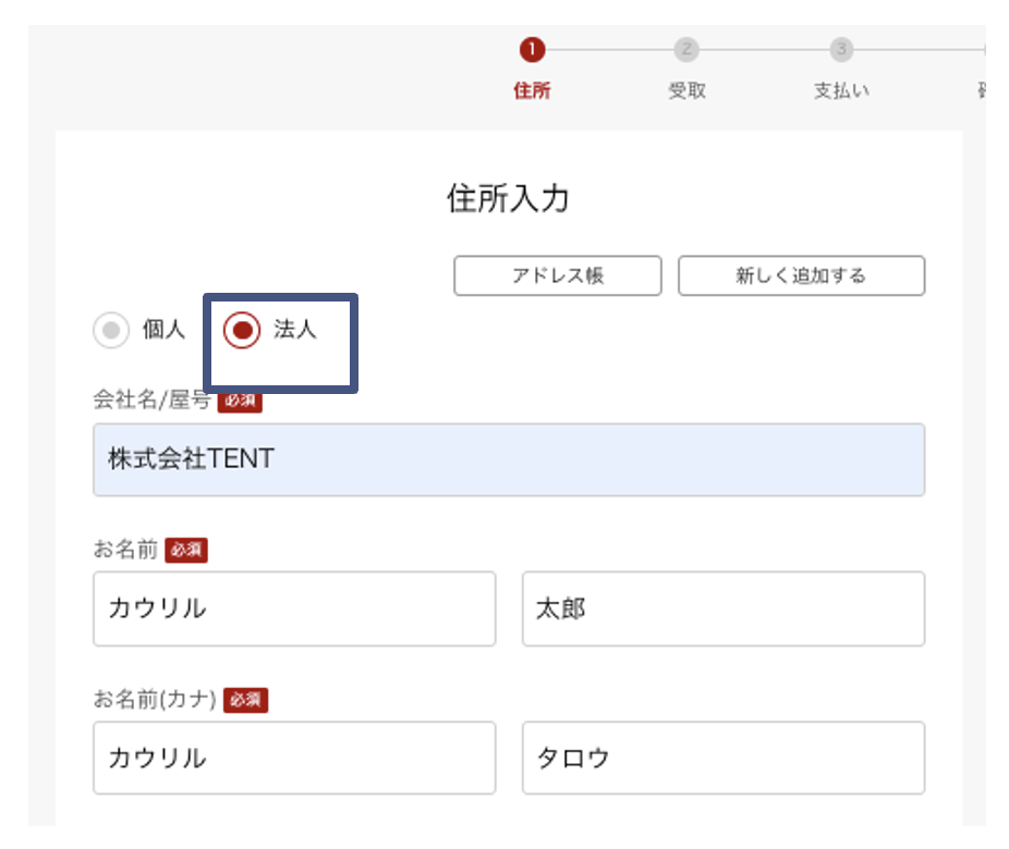 ※住所入力の際に「法人」を選択したユーザーのみ、請求書払いをご利用いただけます。