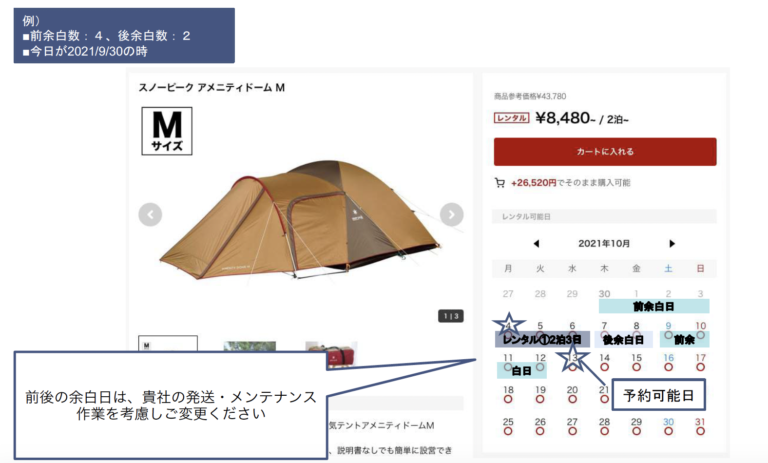 後余白:レンタル終了から、次の注文が可能になるまでに必要な期間(メンテナンス期間)