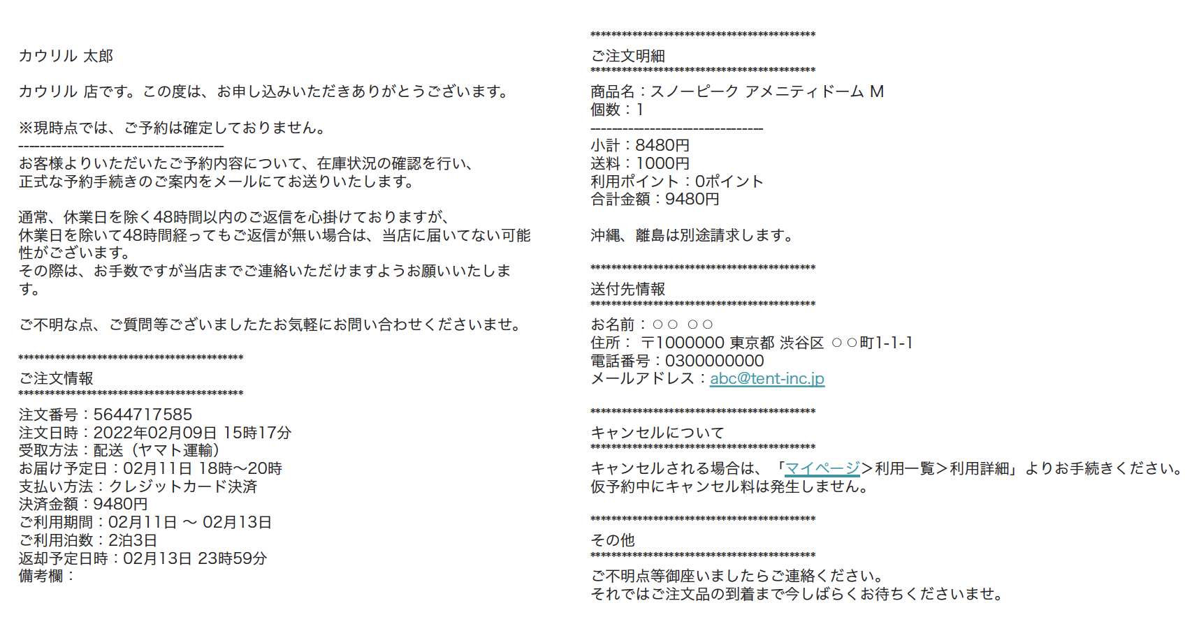 発生タイミング:お客さまがストアより仮予約をした際に発生