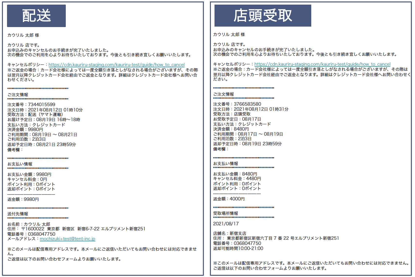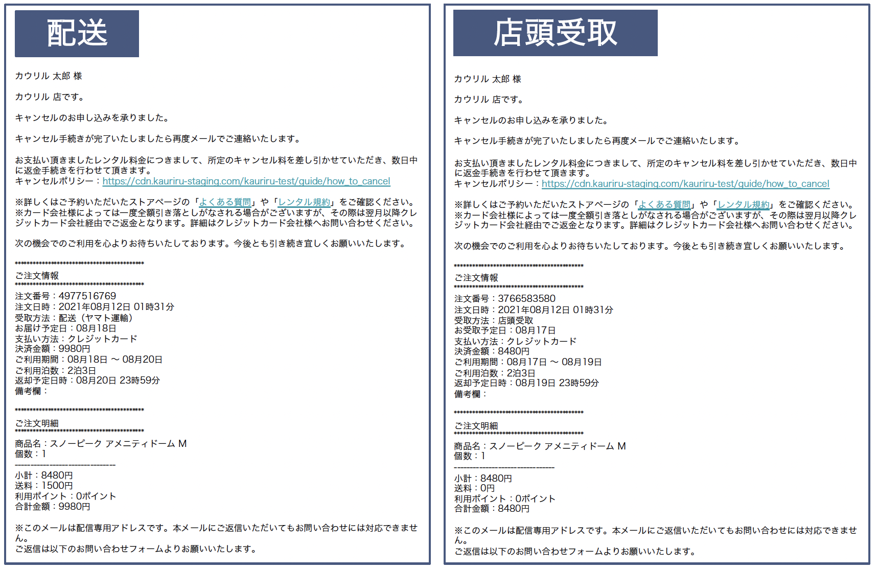 自動配信メールサンプル:ユーザーキャンセル(返金処理待ち)