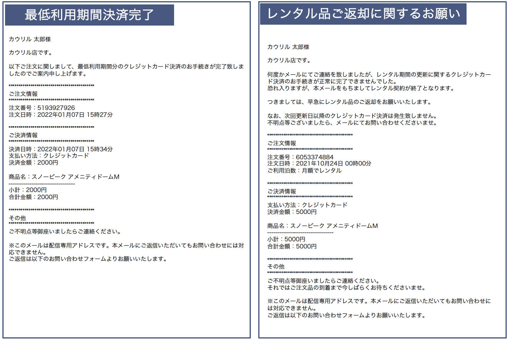 レンタル期間強制終了(レンタル品ご返却に関するお願い):「レンタル更新手続き失敗」の状態で次の更新日に達した際に発生