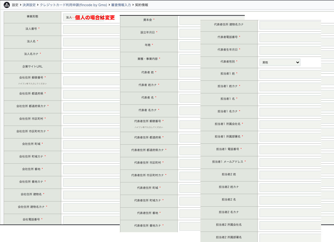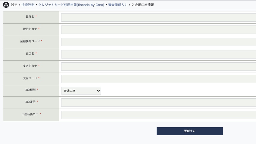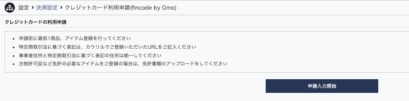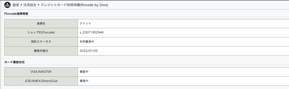 決済方法:クレジットカード決済利用申請(fincode by GMO)