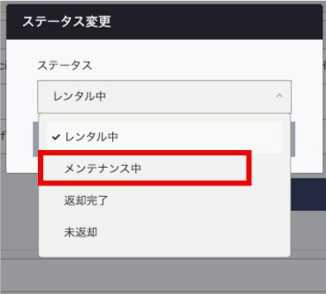 ・現ステータスが「レンタル中」のときに、プルダウンにて「メンテナンス中」を選択できるようになりました。