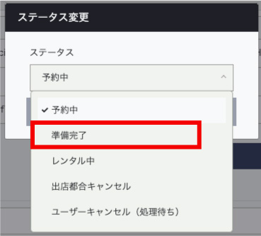 (「準備完了」の選択は任意になりますので、「準備完了」を使用せず、これまで通り「予約中」から直接「レンタル中」に変更も可能です。)