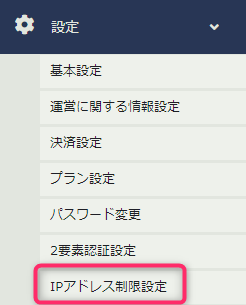 設定>IPアドレス制限設定>接続を許可するIPアドレスを設定してから、制限をオンにする